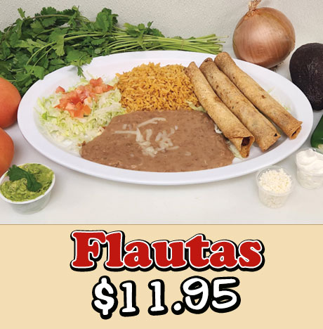 3 Flautas, Guacamole, Sour Cream, Queso Fresco